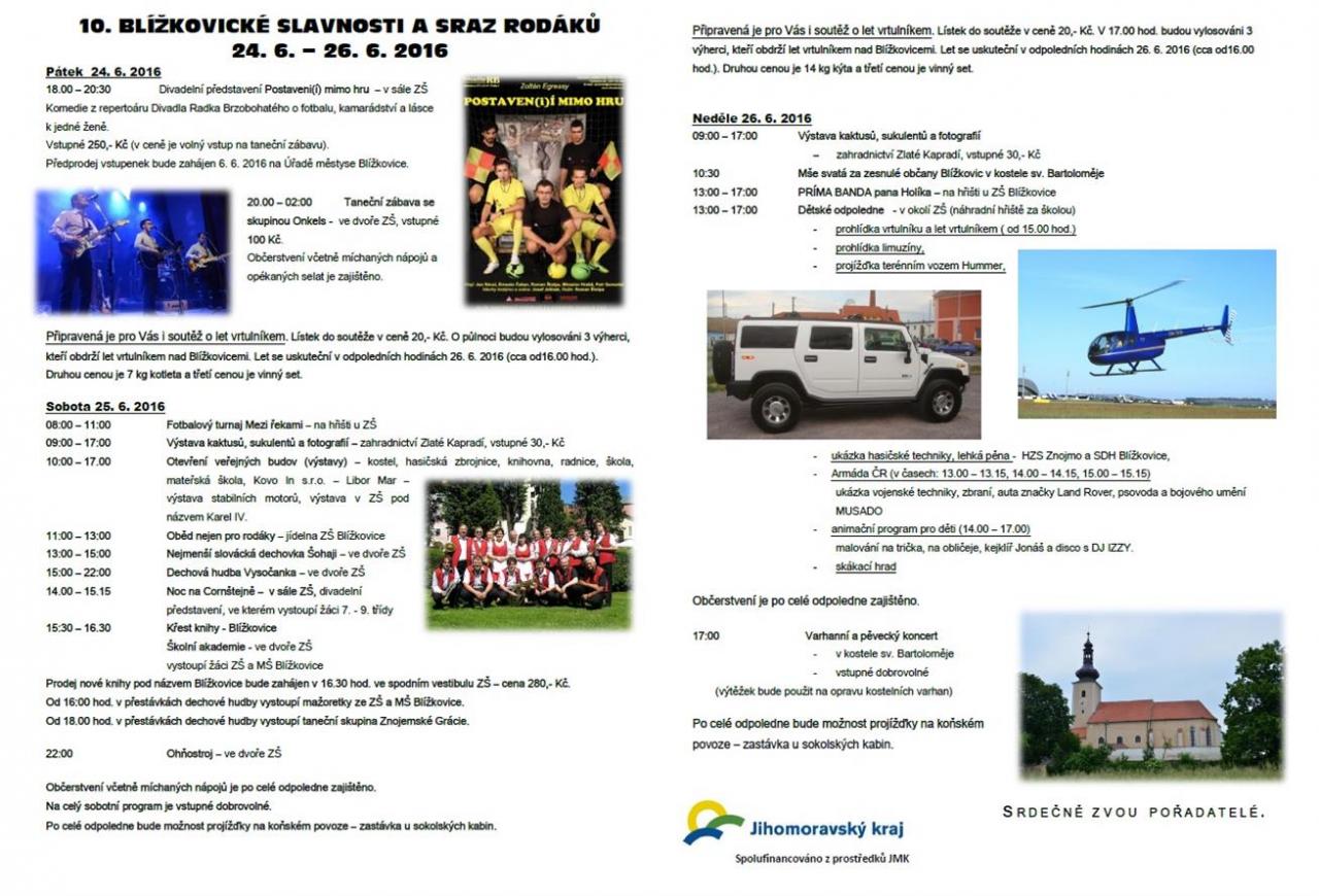 10. blížkovické slavnosti a sraz rodáků (24. - 26. 6. 2016)